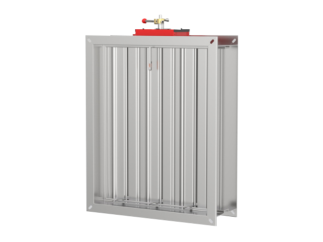 空調排風管用通風防火閥包括閥門架和閥板。閥板安裝在閥門架外側表面的頂部,閥板的表面固定安裝有熔斷桿,熔斷桿的一端固定安裝在閥門架的表面,閥門架的內部安裝有固定裝置,用于在閥板密封的時候將其鎖緊,閥板與閥門架的表面通過合頁進行安裝,閥板與閥門架的表面垂直。